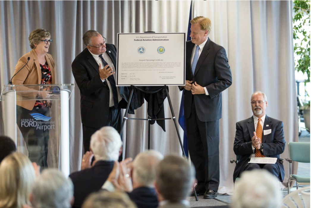 Grand Rapids, Mich. – The Gerald R. Ford International Airport Authority (GFIAA) is officially operating. The Authority transition was approved by the Federal Aviation Administration (FAA) today, with support from Kent County Commissioners and government officials.
