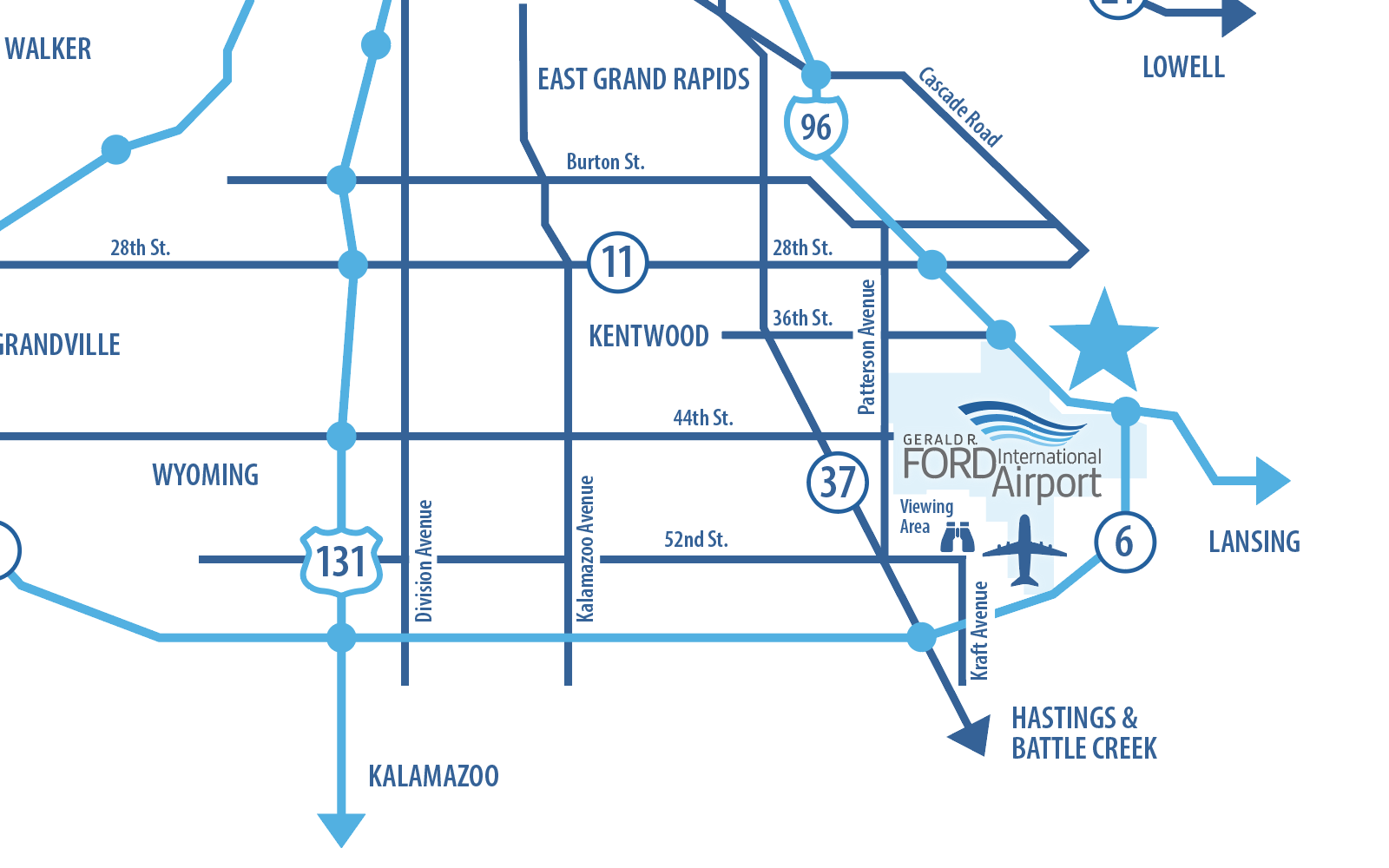 GFIA offers the convenience of a Cell Phone Lot for those who are picking up arriving passengers. The Cell Phone Lot is located on Pederson Ct., just east of Patterson Ave. You must remain with your vehicle at all times in the Cell Phone Lot.